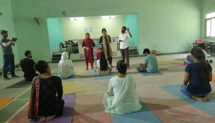 लखनऊ: ख्वाजा मोइनुद्दीन चिश्ती भाषा विश्वविद्यालय में भारत सरकार द्वारा चलाए जा रहे ’योगा अमृत महोत्सव कार्यक्रम’ के अंतर्गत शारीरिक शिक्षा विभाग, महिला अध्ययन केंद्र तथा एन. सी. सी. के संयुक्त तत्वाधान में योग कार्यशाला का आयोजन किया गया।