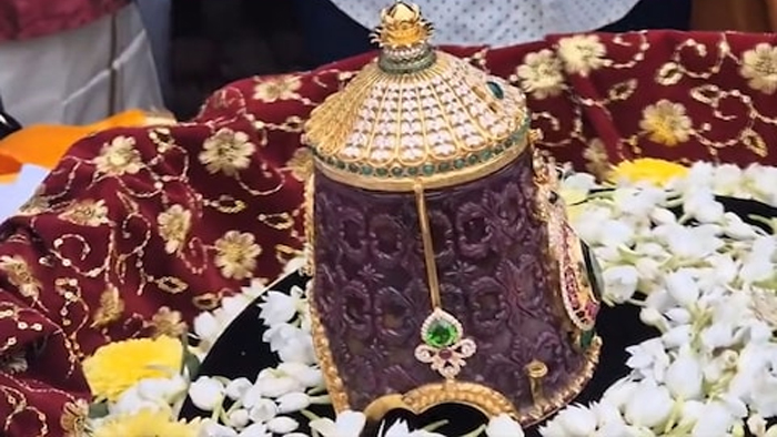 अब इस मुकुट की मौजूदा कीमत हमें पता नहीं है. इस मुकुट की खास बात यह है कि इसे एक ही रत्न से बनाया गया है. इस मुकुट में 400 ग्राम सोना लगा है. इसे गोपालदास जेम्स एंड ज्वेलर्स ने बनाया है. इस ज्वेलर्स के मैनेजर रवींद्रन ने बताया कि इसके लिए कोलंबिया से रत्न मंगाया गया. फिर उस पर मणि, हीरे और एक पन्ना जड़ा गया. इस मुकुट को बनान में छह लोग लगे रहे.
